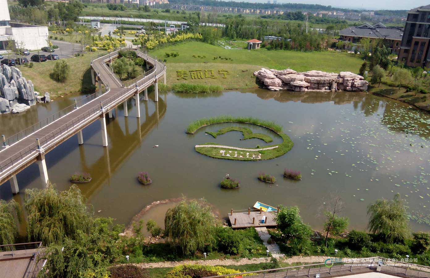 項(xiàng)目采用百奧源®復(fù)合纖維浮動濕地,改善水質(zhì),增添生態(tài)景觀。湖中鴨鵝等水禽以浮動濕地為生息平臺,產(chǎn)蛋量和種群數(shù)量增加。遼寧冬季低溫達(dá)到-30攝氏度,水體結(jié)冰,百奧源®復(fù)合纖維浮動濕地為植被提供了保溫抗壓的保護(hù),次年春季快速反青,保證凈化與生態(tài)效應(yīng)。項(xiàng)目安裝后,生態(tài)環(huán)境得到了良好的改善,藻華現(xiàn)象得到了控制,水質(zhì)恢復(fù)清澈。