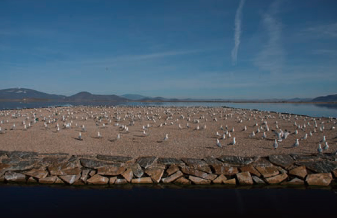 項(xiàng)目以百奧源®浮動(dòng)濕地載體為基質(zhì)在俄勒岡州(Dutchy湖)、加利福尼亞州(Sheepy湖)的兩個(gè)湖泊內(nèi)分別布設(shè)浮動(dòng)棲息地,作為紅嘴鷗生息、繁育場所。浮動(dòng)濕地棲息地以礫石為表面以適應(yīng)紅嘴鷗棲息需求。項(xiàng)目采用百奧源®浮動(dòng)濕地構(gòu)建不僅滿足了水位變化條件棲息地面積不變的要求,同時(shí)大大降低了工程造價(jià)。