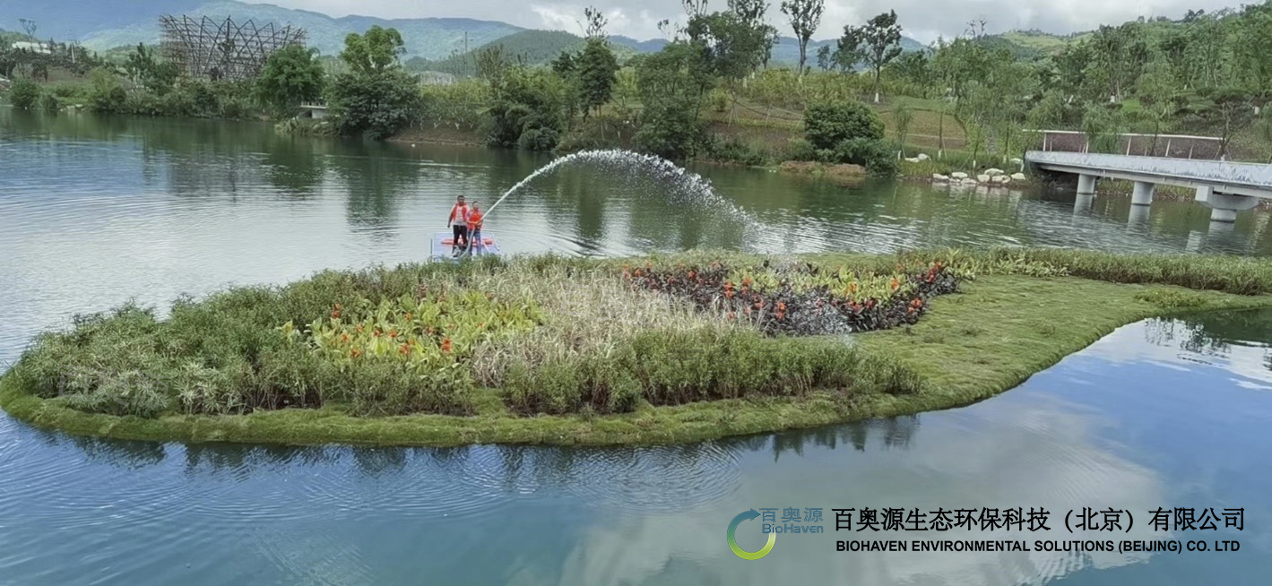 公司引進(jìn)的浮動(dòng)濕地、太陽(yáng)能水循環(huán)復(fù)氧控藻設(shè)備等技術(shù)在流域水環(huán)境改善項(xiàng)目中得到廣泛應(yīng)用。